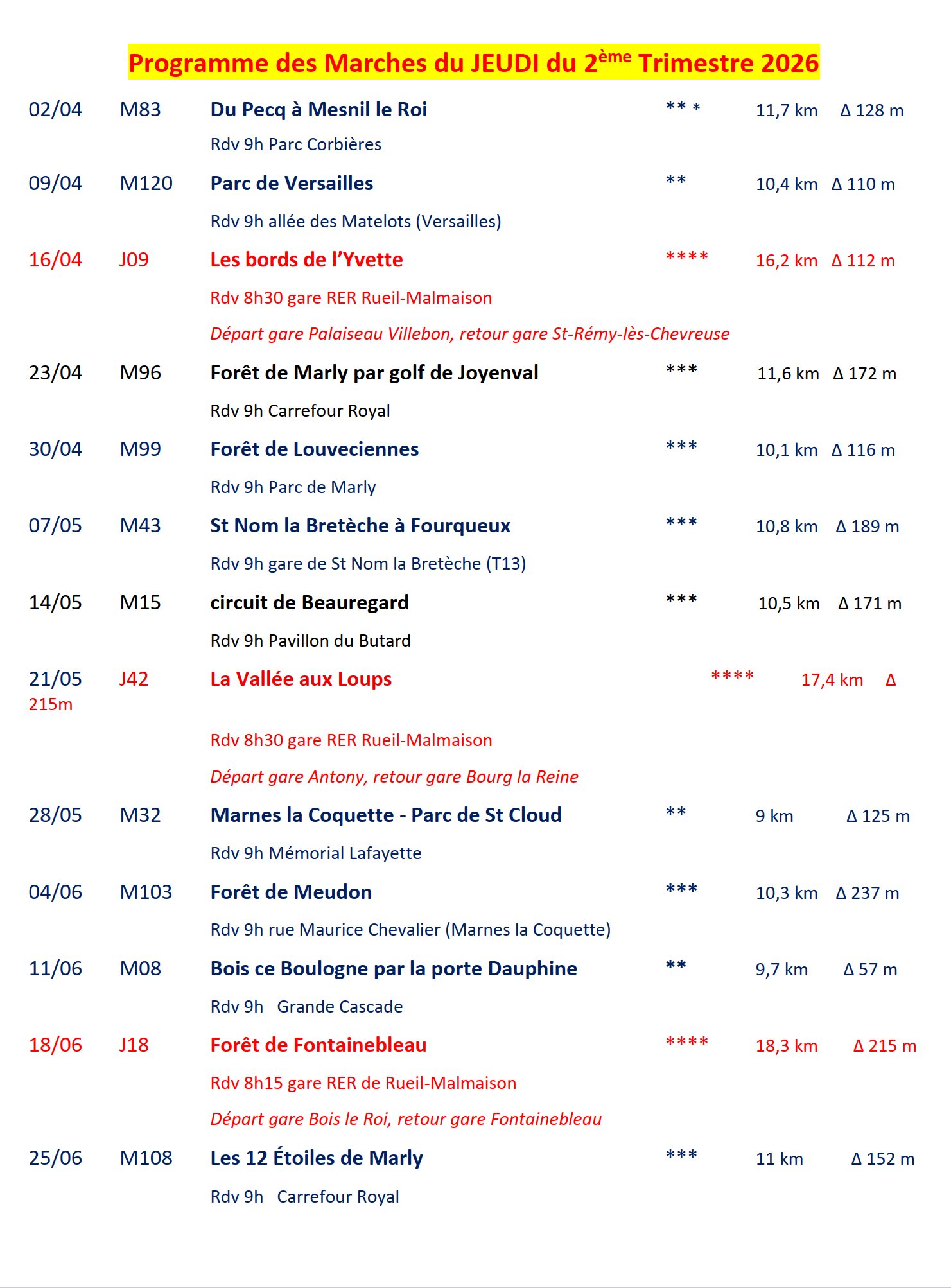 Une visite médicale est conseillée pour les marches de plus de deux étoiles.