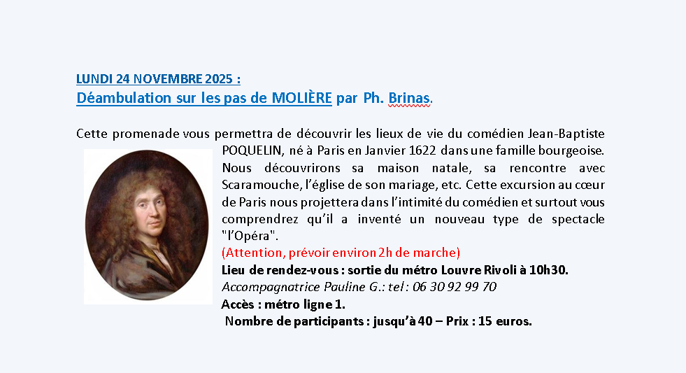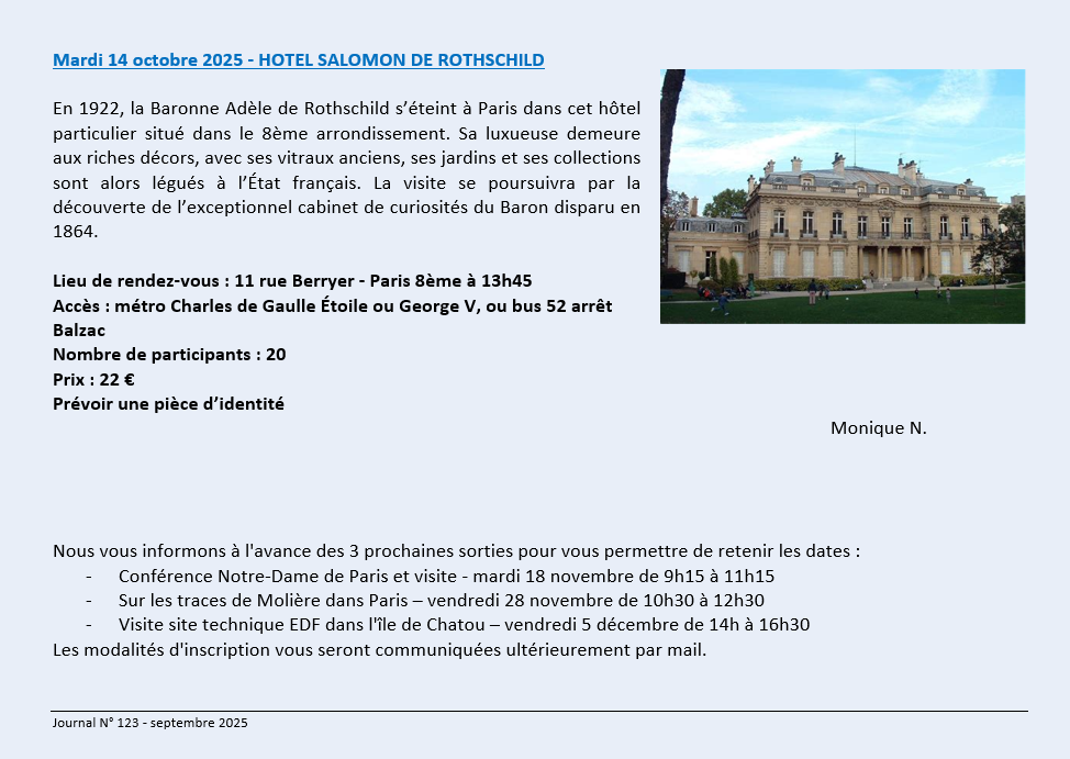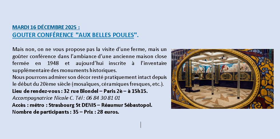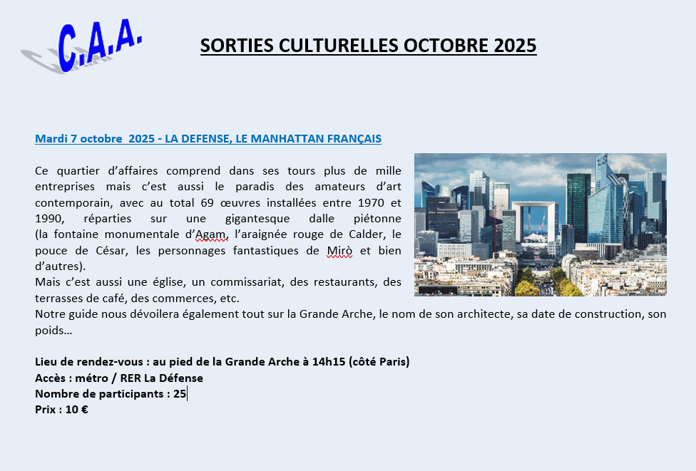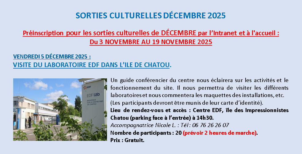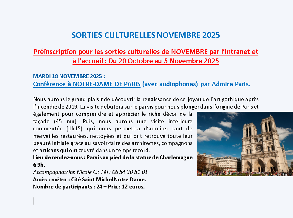 Sorties Culturelles d’Octobre Sorties Culturelles de Novembre Sorties Culturelles de Décembre